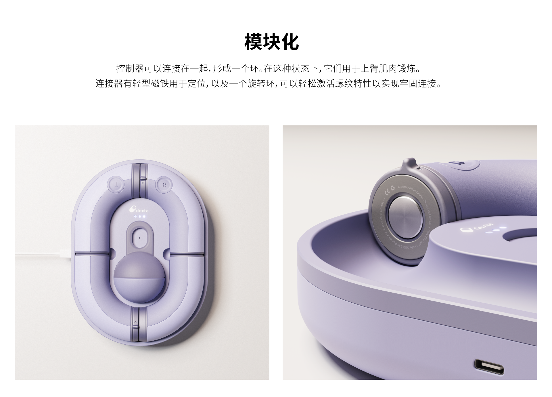 控制器可以連接在一起,形成一個環(huán)。在這種狀態(tài)下,它們用于上臂肌肉鍛煉。連接器有輕型磁鐵用于定位,以及一個旋轉(zhuǎn)環(huán),可以輕松激活螺紋特性以實(shí)現(xiàn)牢固連接。