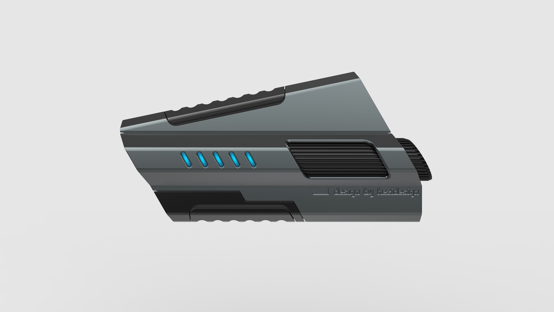 輪廓設(shè)計(jì):采用多面切割立體造型,模仿槍械扳機(jī)護(hù)圈與散熱孔的棱角處理,搭配啞光金屬漆面與戰(zhàn)術(shù)灰配色,強(qiáng)化力量感。