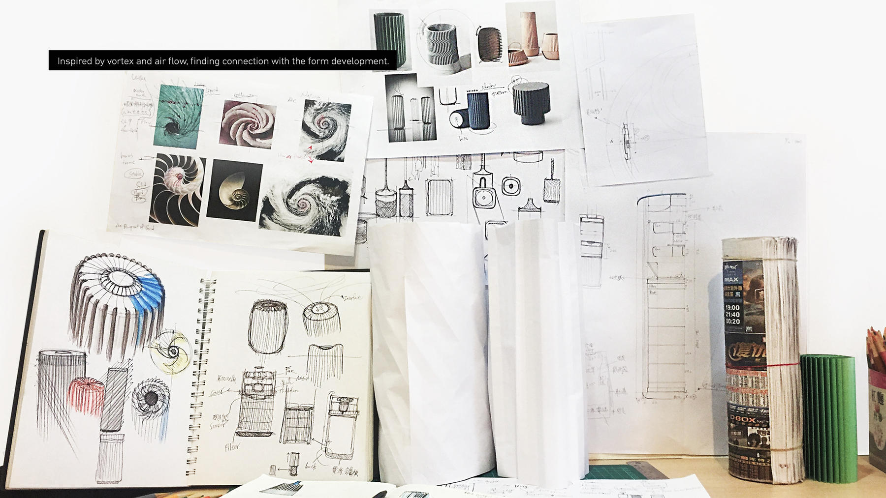 今天這款空氣凈化器,就做到了簡(jiǎn)單造型,卻與眾不同的創(chuàng)意,通過單一造型的薄片不斷旋轉(zhuǎn)重復(fù),組成圓柱形造型。
